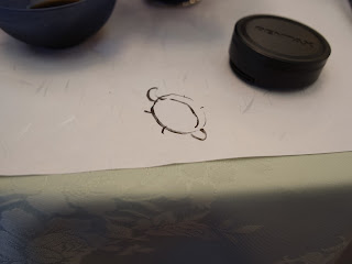 式の時にいた撫で亀。なでると幸運を呼ぶそうです。 色紙に書く練習をしました。こっちの方がよかった? |